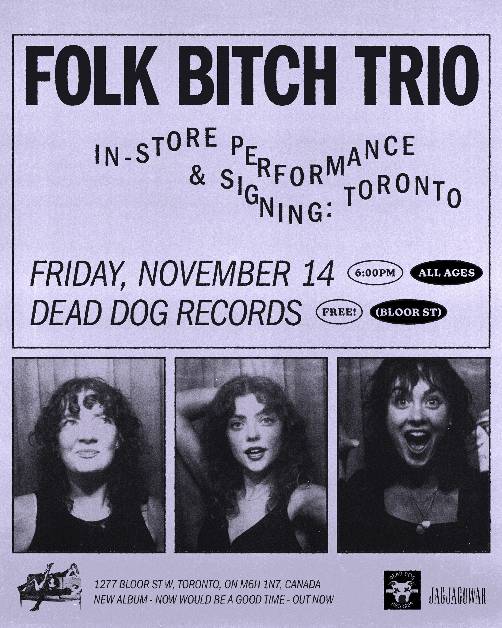 Before their sold-out show at Sound Garage, Folk Bitch Trio are stopping by Dead Dog Records (Bloor St) for an intimate acoustic set and signing!